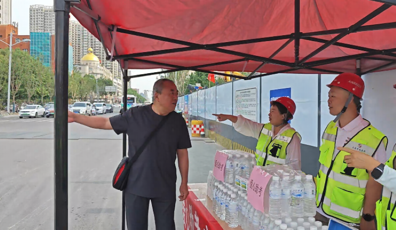 施工过程中,太原市政集团作为主要施工单位,积极统筹协调,主动与园林、电力、自来水、热力等平行施工单位沟通,在全力推进工程进度的同时,为各参建单位留好施工作业面,合理安排平行、交叉作业,确保工程顺利推进,跑出施工“加速度”。为妥善平衡民生保障与工程建设双重需求,太原市政集团主动担当、积极作为,主动联动交通、城管等部门,采取多项举措,避免影响周边居民的正常生活。在施工中遵循“修路不添堵”原则,精心制定交通组织方案,设置应急通道、便民通道和低噪音设备,并安排交通协管员在地铁口等关键部位现场指挥、引导行人,为市民出行提供便利条件,将“让市民少绕一米路,少踩一个水坑”融入深夜巡查便道安全的脚步,化作施工与民生和谐共生的温暖注脚;实施“半幅施工+分段施工+动态导改”策略,与交警部门合作,优化交通信号灯配时,有效缓解施工对市民出行的影响;中高考期间,积极开展“为梦护航 爱心助考”志愿服务活动,全线工地按下“静音键”,在关键路口设立助考点,配备矿泉水、防暑降温药品等,并为考生开放绿色通道,以实际行动助力中高考;在施工现场设置安全警示标志和施工公告牌,及时告知市民施工进展和注意事项,增强市民对施工的理解和支持;组织施工人员进行城市家具的及时进场和质量检验工作,在全线开展城市家具安装作业,将一批兼具现代风格与太原特色的公交站台、休闲座椅、分类垃圾箱等设施安装到位,这些融合功能与美学的城市家具,已成为迎泽大街沿线的新亮点,不仅提升了城市空间的品质,更展现出太原深厚的人文关怀与现代城市风貌。全体施工人员以高度的责任感和使命感,将品质与关怀融入到每一个细节中,用实际行动诠释了“以人为本,和谐共建”的施工理念。