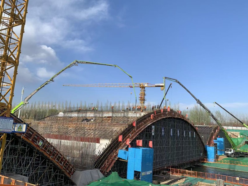 该桥采用单跨72米连续5跨设计,主腹拱作为桥梁的核心承重结构,是此次桥梁施工的核心节点,项目团队顺利克服弧形施工、模板一次成型、大体量浇筑、五跨精准落架等挑战,以“毫米级”精度贯穿施工全过程,为桥梁成型打造坚实“筋骨”。