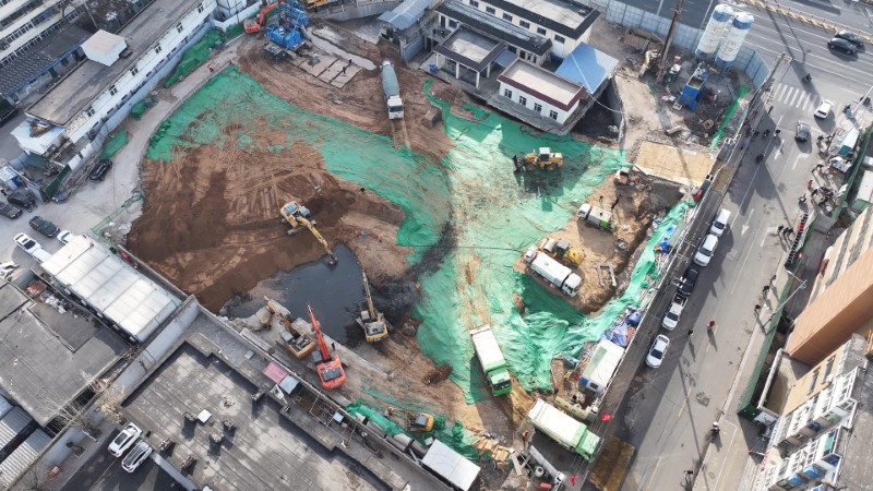 作为集团公司首次应用的先进工艺,TRD工法成为该工程围护结构施工的最大亮点。该工法由主机带动插入地基中的链锯式切割箱横向移动、切割及灌注水泥浆,在槽内进行混合、搅拌、固结原来位置上的岩土,形成等厚水泥土地下连续墙。这种施工方式在胜利街缓洪池改造项目展现出独特优势:整机高度仅10.1米,适配高压线下方等高度受限场景;低重心设计赋予设备超强稳定性,为施工安全提供了坚实保障;其高精度控制系统确保了墙体在垂直与水平方向上的施工质量。同时,该工法对硬土、砂卵石等复杂地层适应性强,所形成的等厚连续墙止水性能优异、品质均匀,并可实现斜墙施工,兼具了良好的环保性与经济性。此次TRD工法的成功应用,不仅为项目高质量建设保驾护航,更填补了集团公司在该技术领域的空白,积累了宝贵施工经验。