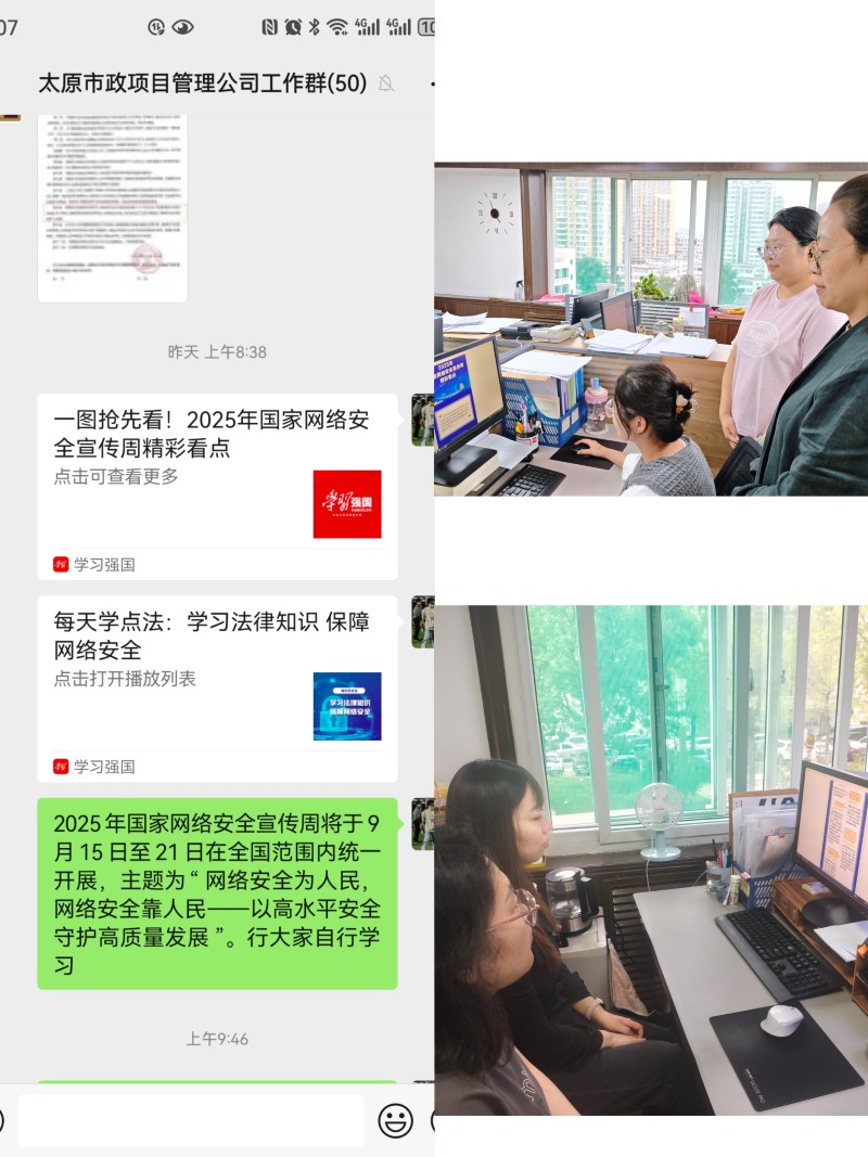 9月15日至21日,项目管理公司党支部开展“学法用法强本领 同筑安全防护墙”专题活动。此次活动聚焦《网络安全法》《数据安全法》《个人信息保护法》等核心法律条规,结合生活中常见的网络诈骗、信息泄露等案例进行解读与分析,引导党员干部把所思所学融入工作与生活,不断增强辨识与抵御网络风险的能力,争当网络空间清朗环境的维护者、践行者。